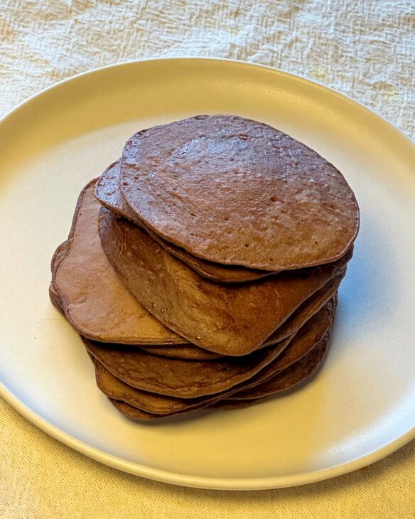 Quand on pense pancakes on pense aux énormes crêtes moelleuses et gourmandes. C’est forcément délicieux et réconfortant. Alors pourquoi ne pas aussi en faire un allié santé? Pour ces pancakes j’ai réfléchi à un moyen d’utiliser le côté moelleux et gourmand associé à des ingrédients santés comme le cacao pur, riche en magnésium, les graines de chia, riches en omégas 3 et protéines, mais aussi le fait de pouvoir en faire plusieurs, facile à conserver sur 2 ou 3 jours.